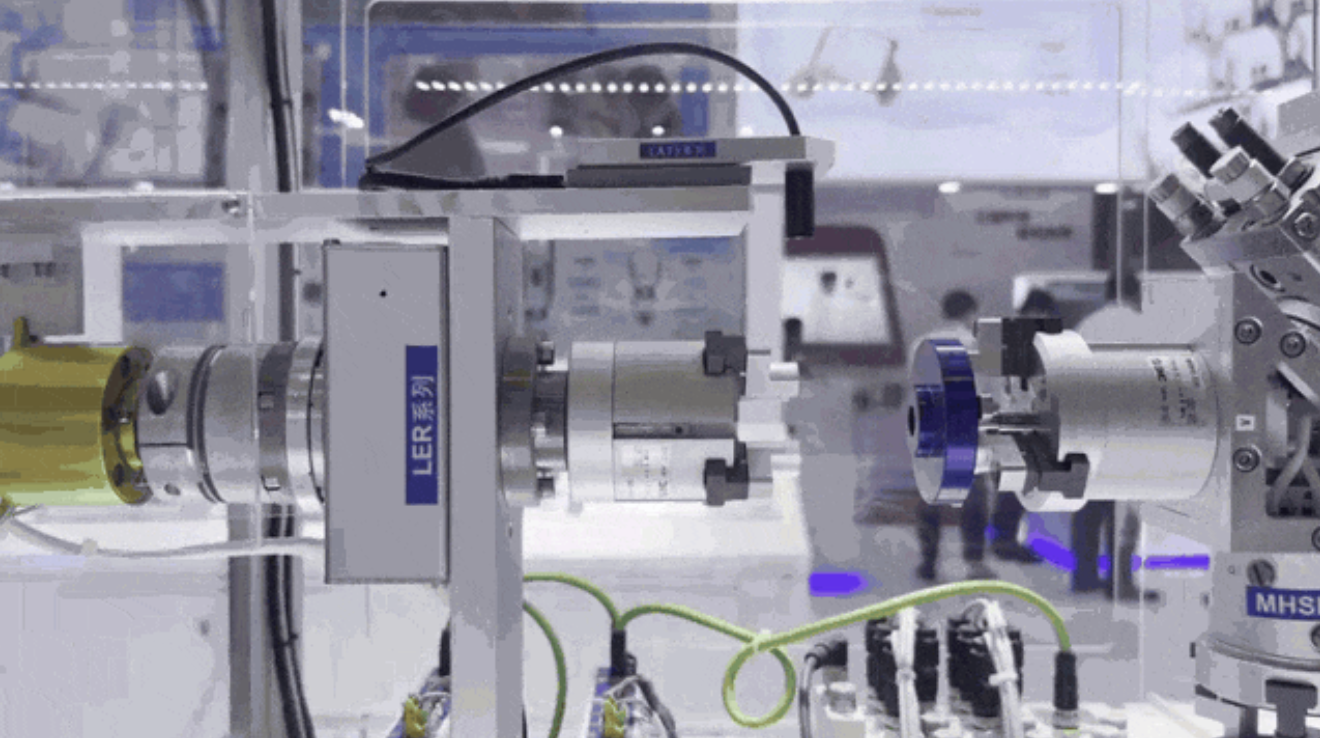 SMC通过使用多款电动和气动产品,实现了一套系统控制和多个机床加工工序,如机床中的X-Y轴机械手拾取、搬运、上料、翻转等操作。其中,SMC通孔型3爪气爪MHSH3系列,可将中间的推杆设计成杆不回转,同时实现接通气、电并旋转的非标设计,使得加工更加便捷,提高生产效率和质量。
