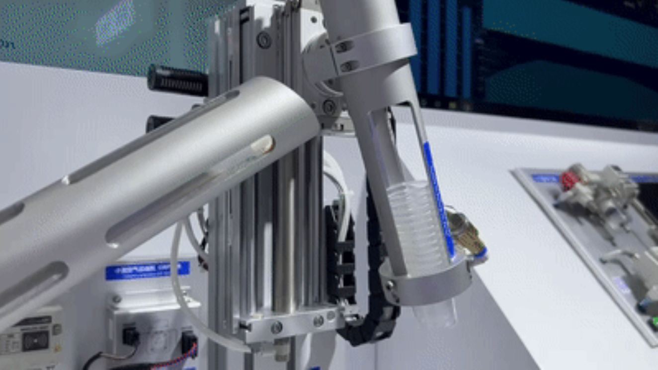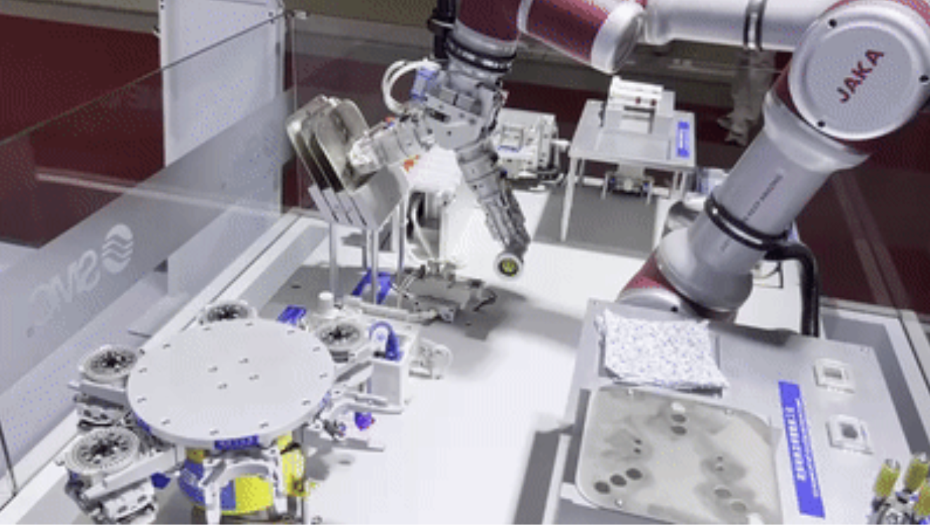 SMC与节卡协作机器人共同展示了AHC的6种不同变体抓手和多功能自动工具快换盘。在更换其他夹具时,可以迅速启动装配线,显著减少部件切换时间和工序等待时间。此外,通过不同的气爪组件,完成了化纤布拾放、尼龙球码放、铁板堆叠等工艺的展示。